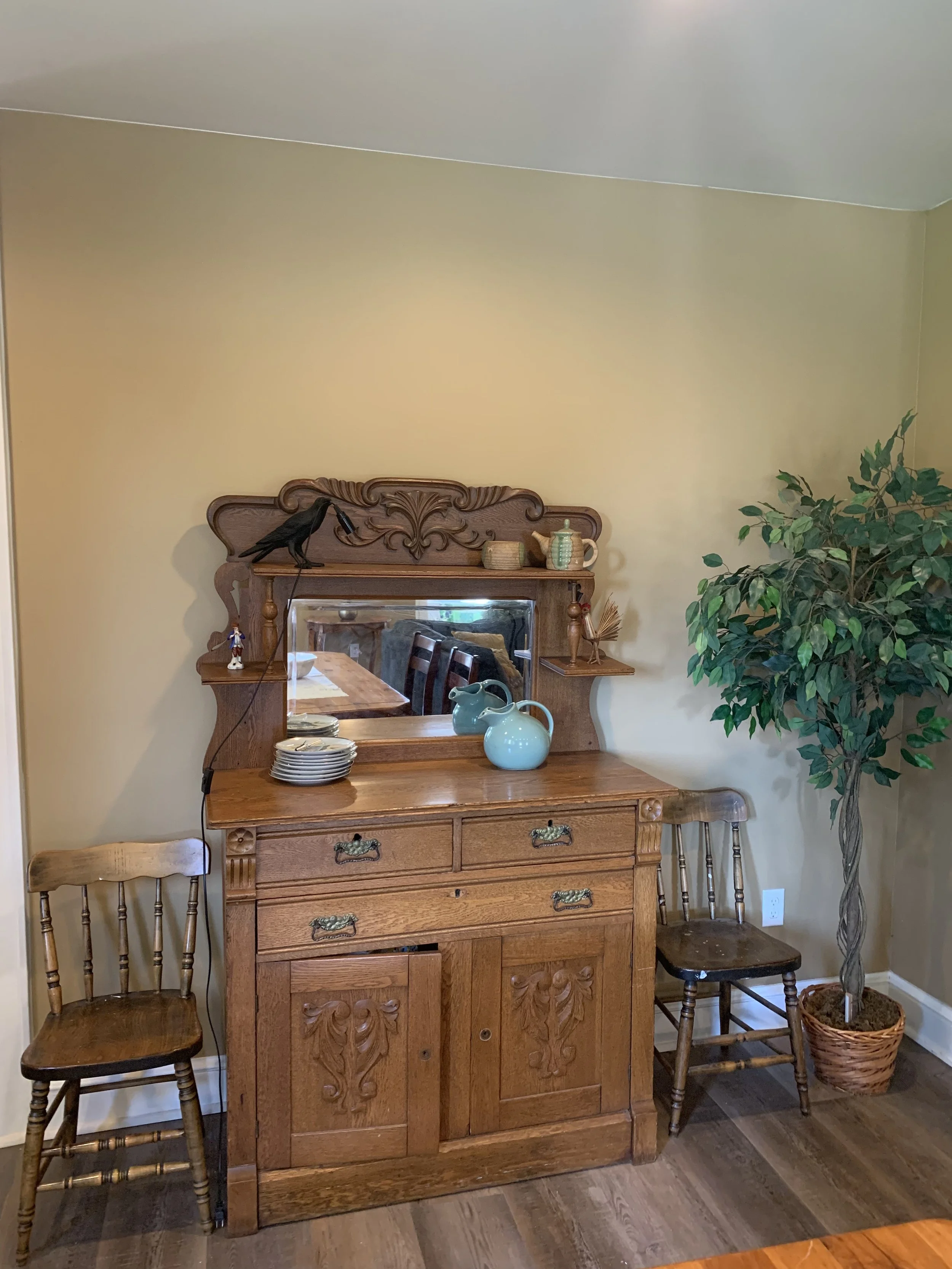 I got the china cabinet at The Salvation Army for only $30. It needed a little work, and I am still on the hunt for replacement knobs. Restore has not been providing, what are the good architectural salvage places in Milwaukee? The tree was from another small thrfit store, only $5.